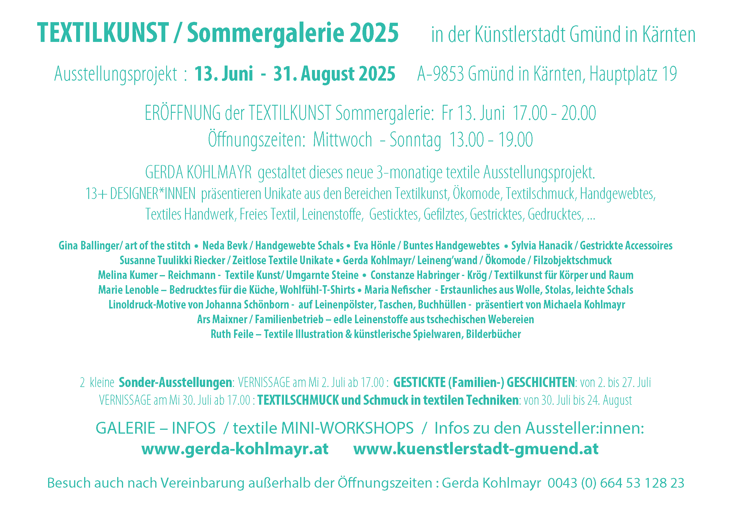 Sommergalerie TextilKUNST Gmünd Hauptplatz 19 – Kärnten